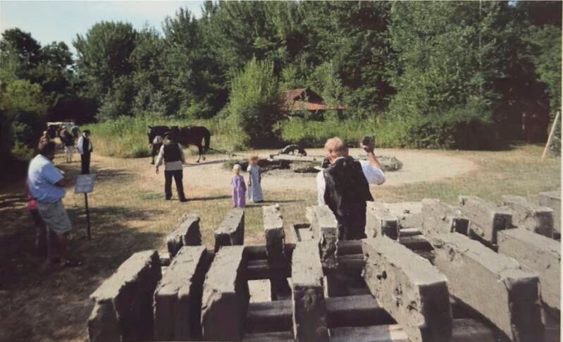 æltning af leret i den gamle æltemølle, der blev trukket af en hest to gange dagligt. Gæsterne kunne også besøge det historiske køkken i Historisk Værksted.